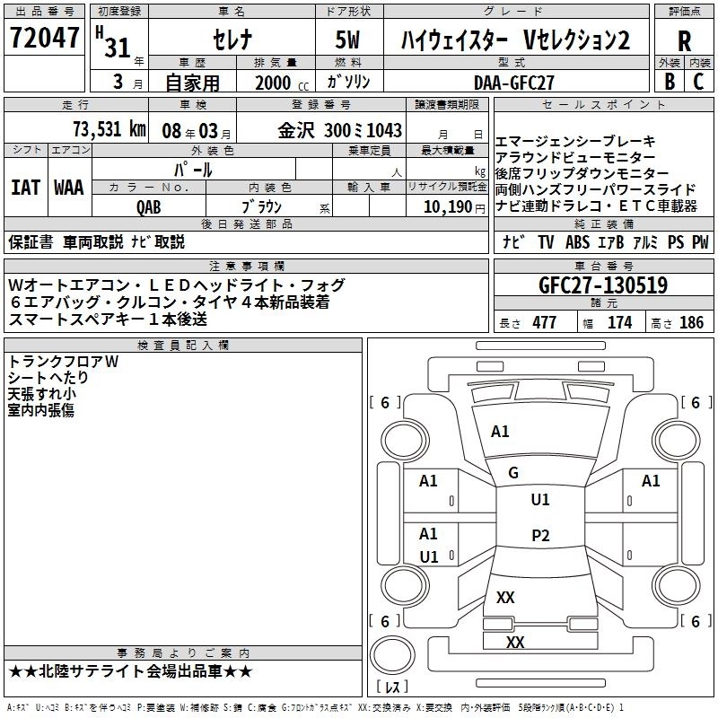 Статус выставлен на аукцион Лот 72047 Аукцион TAA Chubu Дата аукциона 29.01.2026