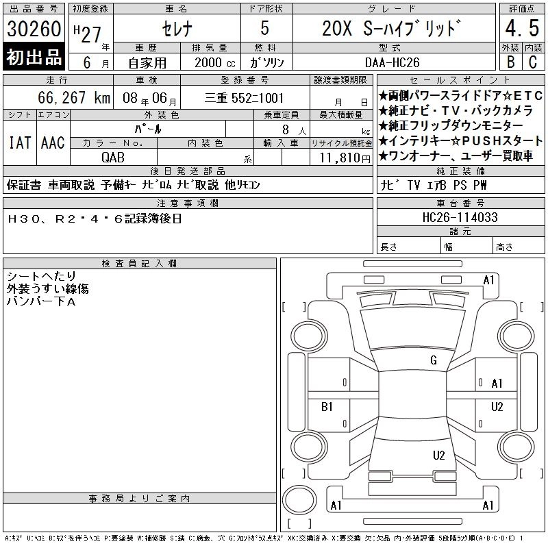 Статус выставлен на аукцион Лот 30260 Аукцион CAA Chubu Дата аукциона 28.01.2026