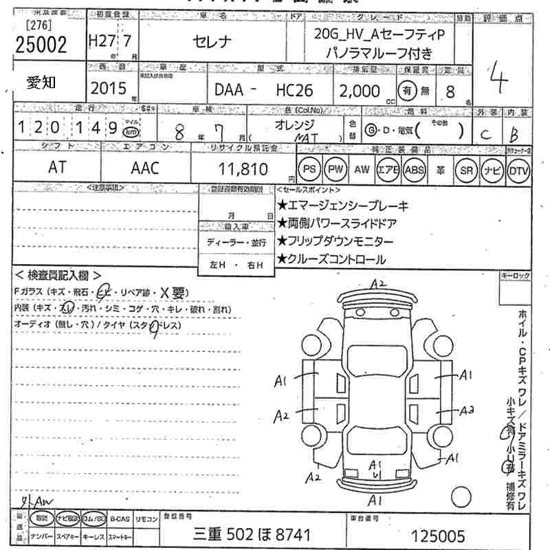 NISSAN SERENA 2015 г., лот № 25002