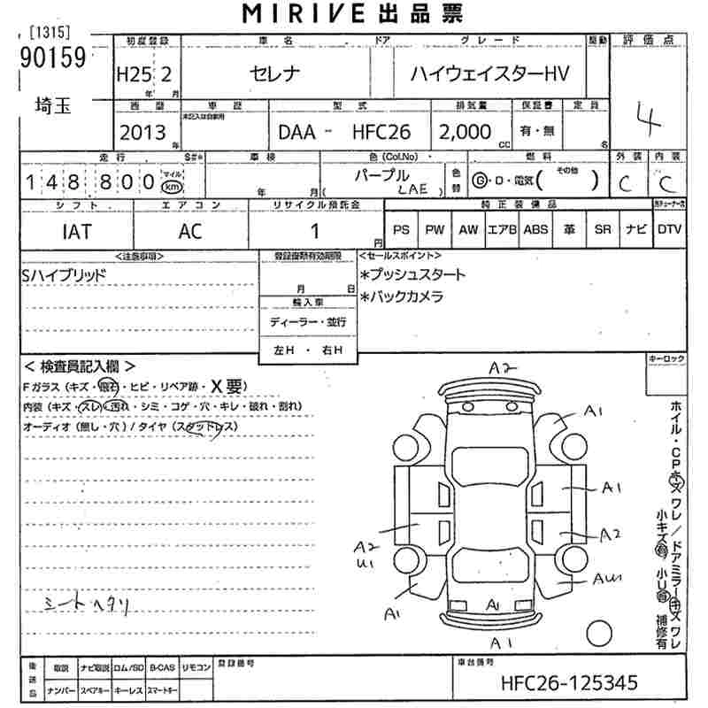 Статус выставлен на аукцион Лот 90159 Аукцион MIRIVE Saitama Дата аукциона 28.01.2026