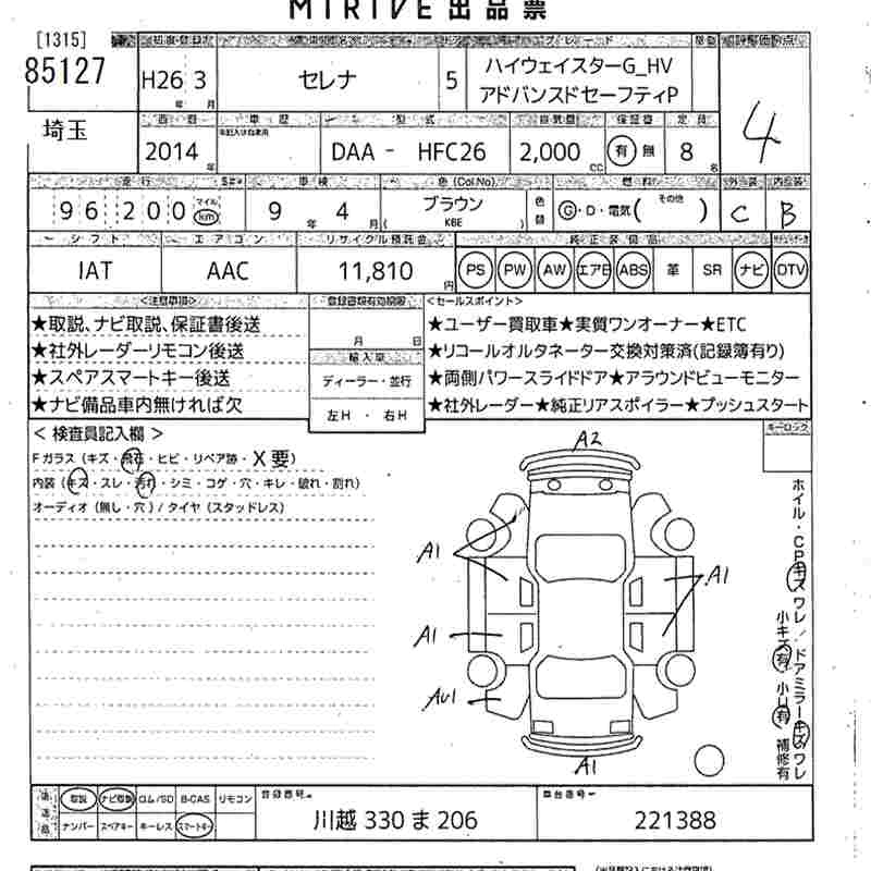 NISSAN SERENA 2014 г., лот № 85127