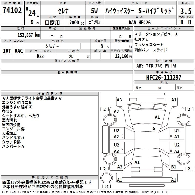 NISSAN SERENA 2012 г., лот № 74102