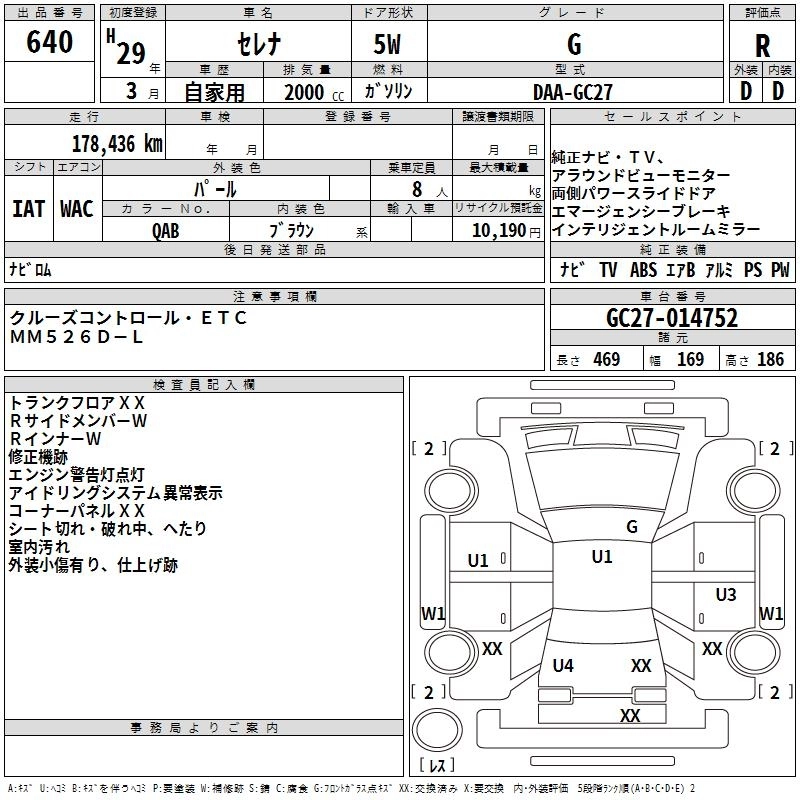 NISSAN SERENA 2017 г., лот № 640
