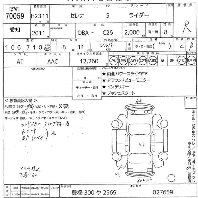 NISSAN SERENA 2011 г., лот № 70059