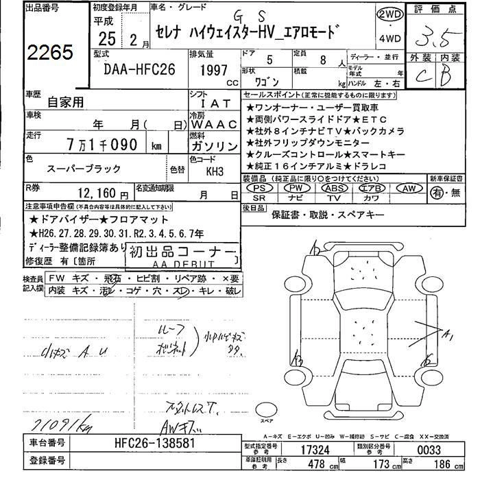 NISSAN SERENA 2013 г., лот № 2265