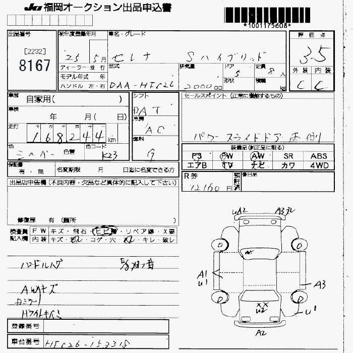Статус продан Лот 8167 Аукцион JU Fukuoka Дата аукциона 30.01.2026
