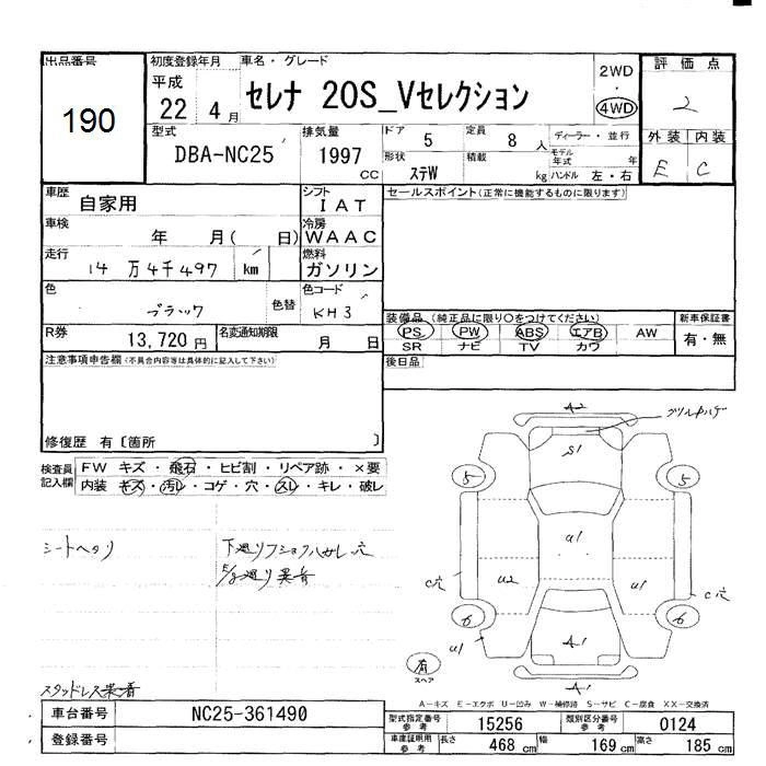 NISSAN SERENA 2010 г., лот № 190