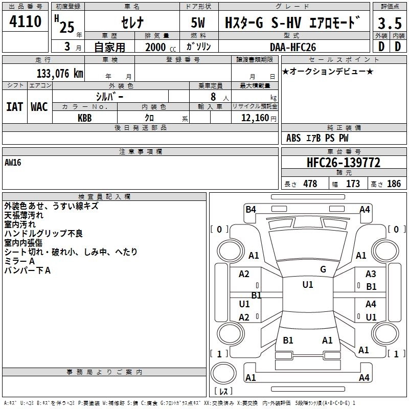 NISSAN SERENA 2013 г., лот № 4110