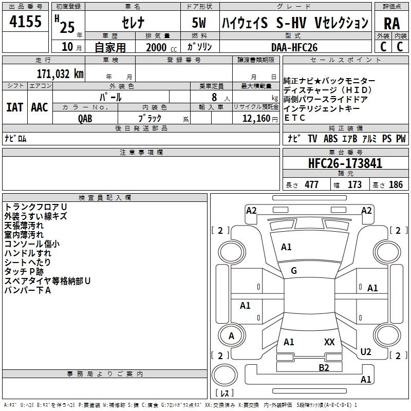 NISSAN SERENA 2013 г., лот № 4155