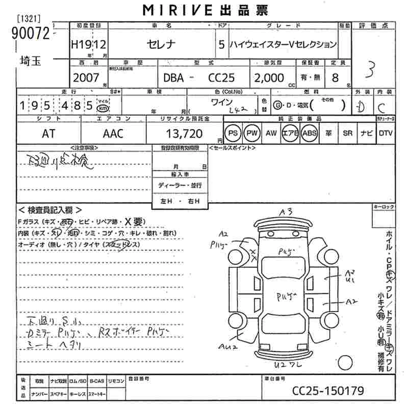 NISSAN SERENA 2007 г., лот № 90072