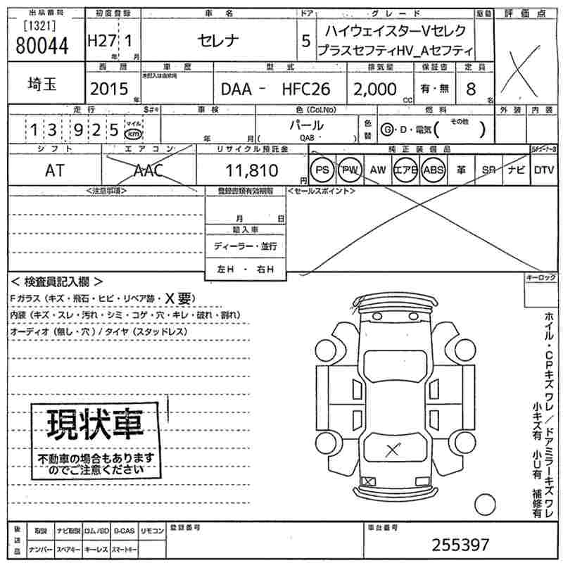 NISSAN SERENA 2015 г., лот № 80044