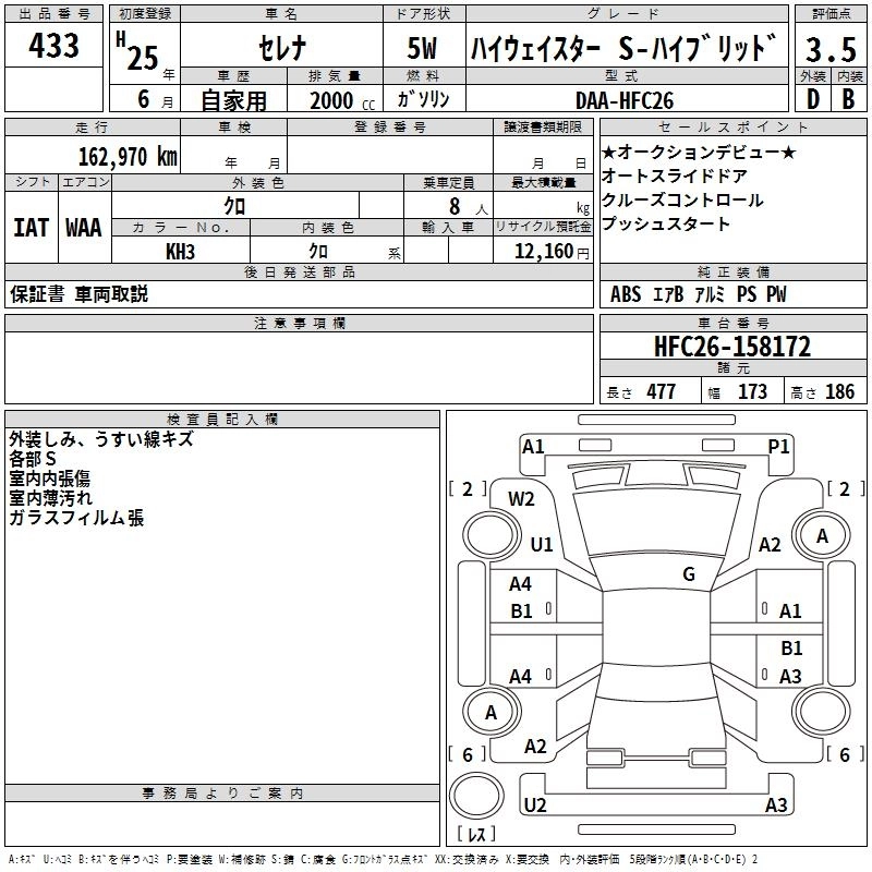 NISSAN SERENA 2013 г., лот № 433