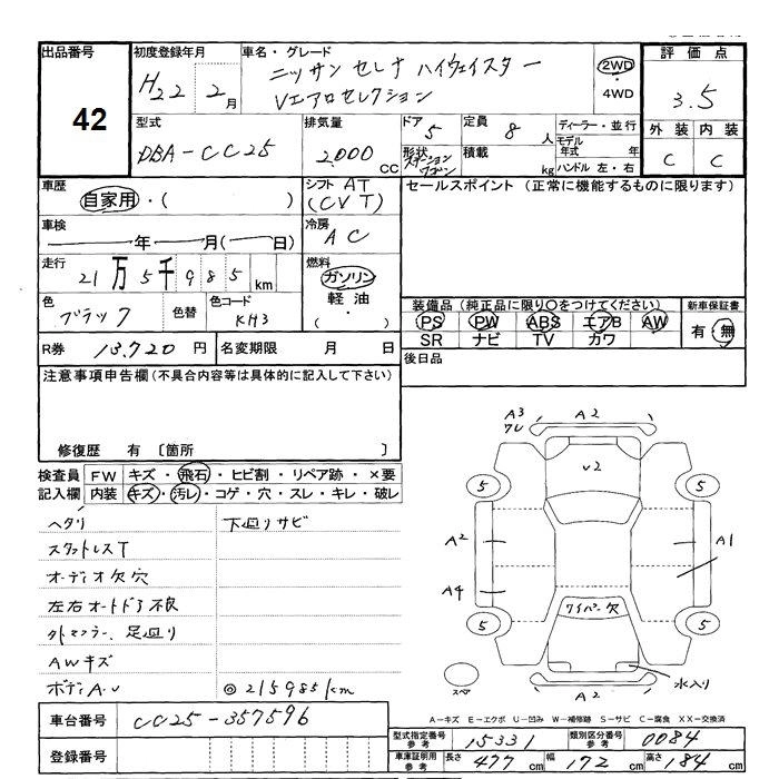 NISSAN SERENA 2010 г., лот № 42