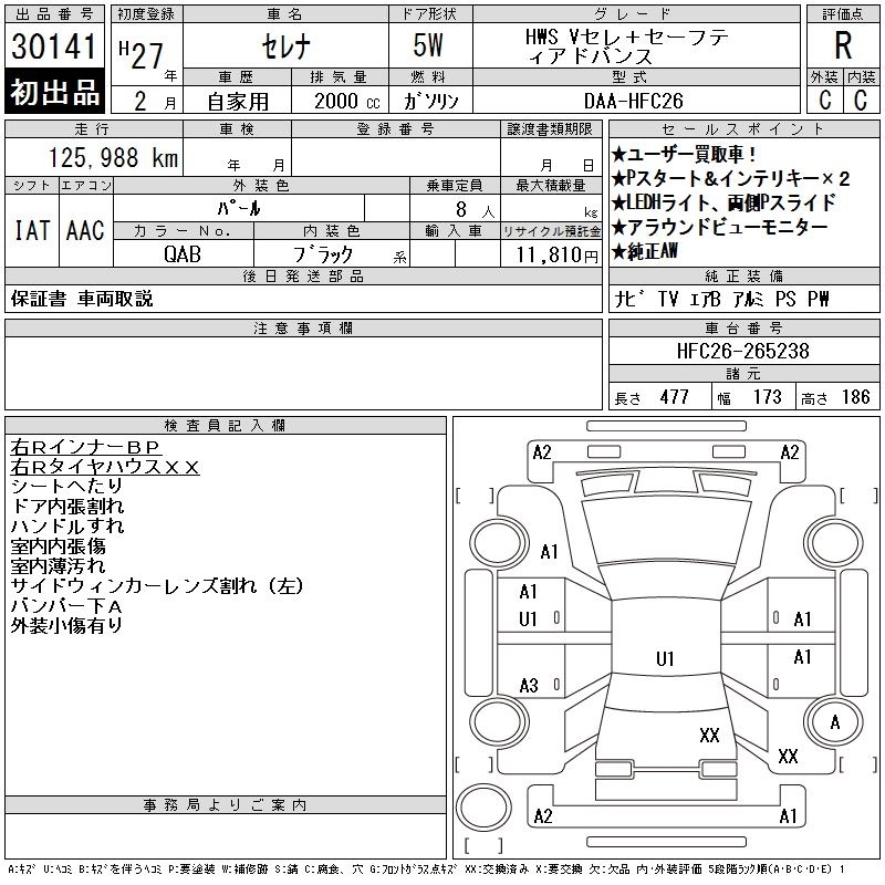 NISSAN SERENA 2015 г., лот № 30141