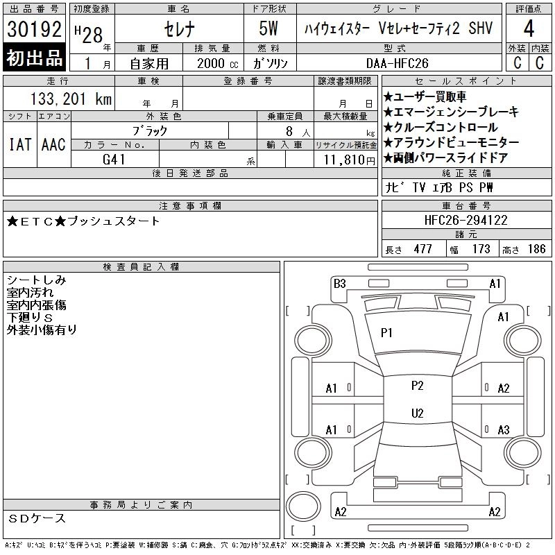 NISSAN SERENA 2016 г., лот № 30192