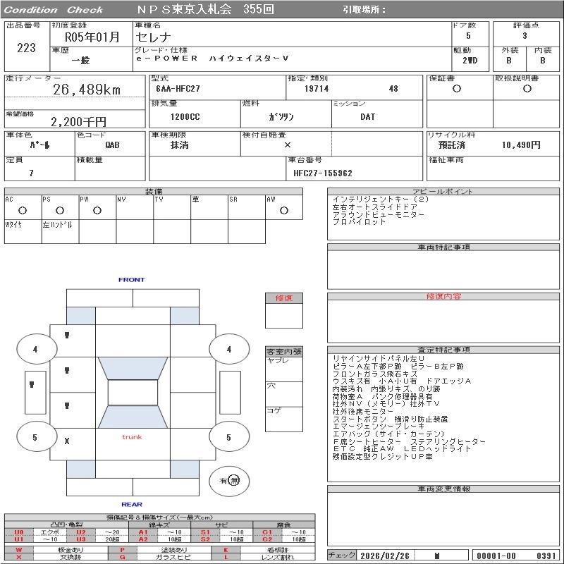 NISSAN SERENA 2023 г., лот № 223