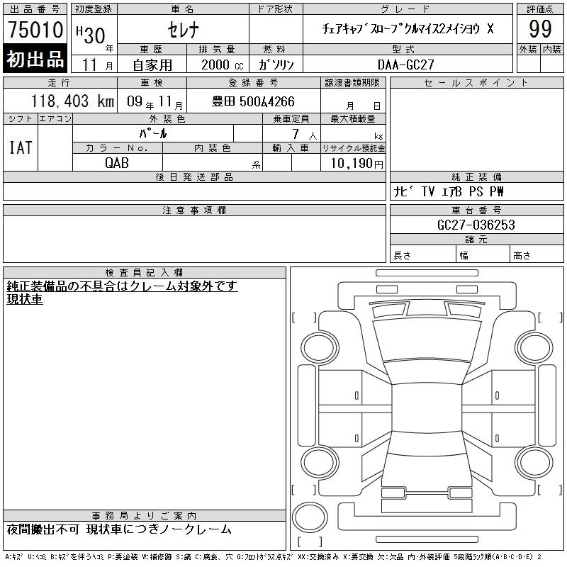 Статус выставлен на аукцион Лот 75010 Аукцион CAA Chubu Дата аукциона 11.03.2026