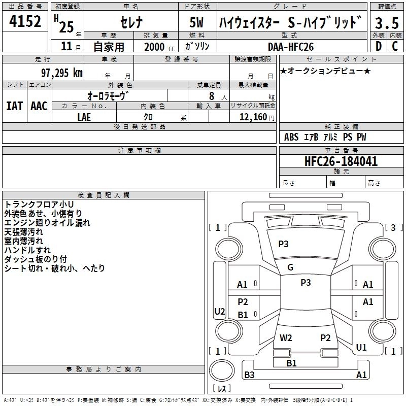 NISSAN SERENA 2013 г., лот № 4152