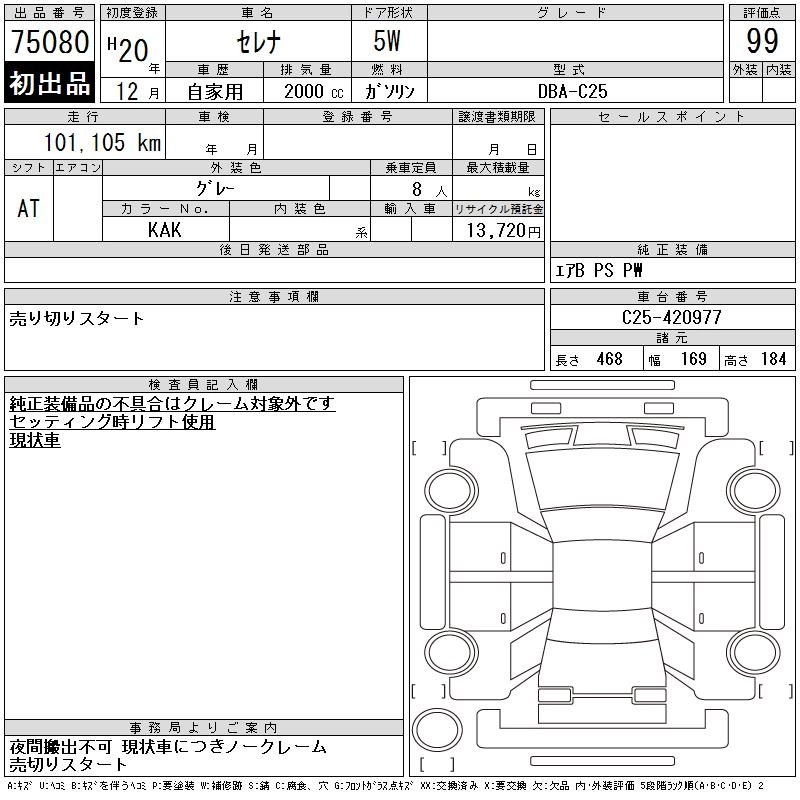 Статус выставлен на аукцион Лот 75080 Аукцион CAA Chubu Дата аукциона 11.03.2026