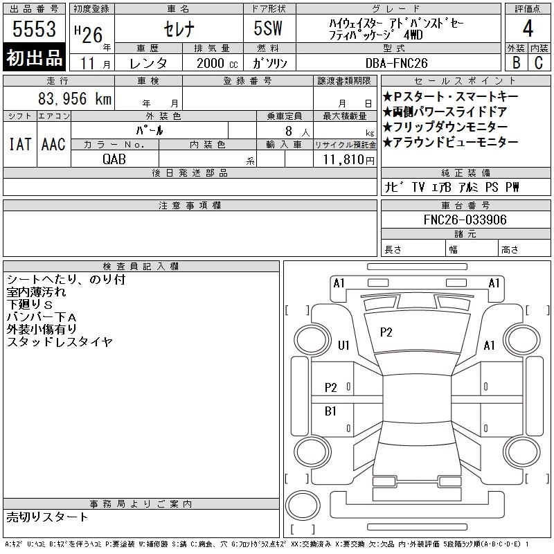 NISSAN SERENA 2014 г., лот № 5553