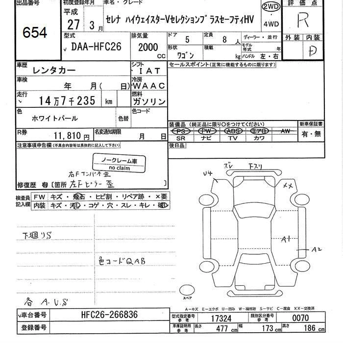 NISSAN SERENA 2015 г., лот № 654