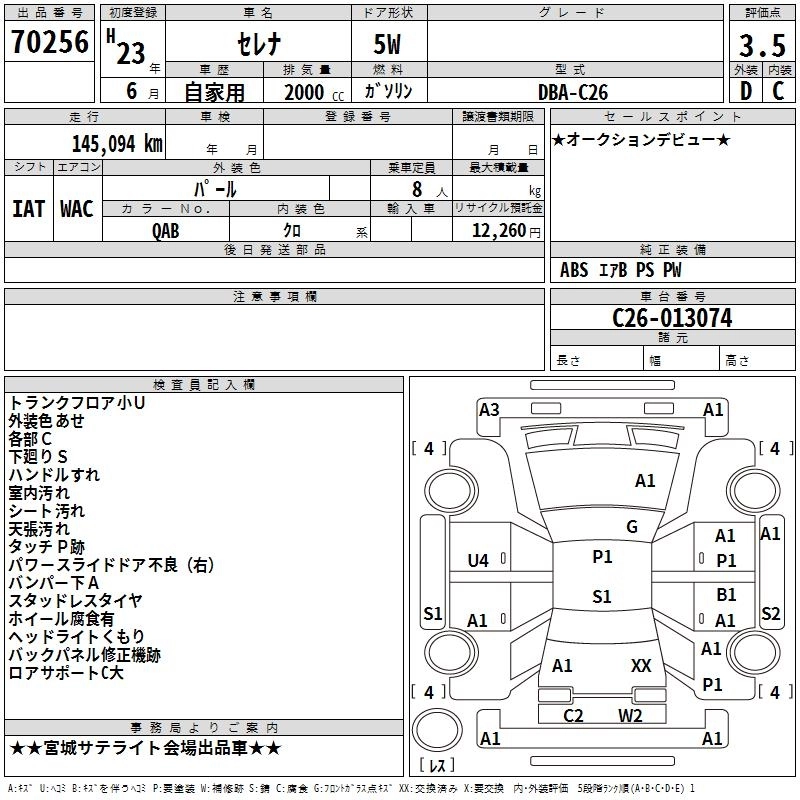 NISSAN SERENA 2011 г., лот № 70256