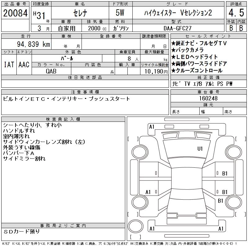NISSAN SERENA 2019 г., лот № 20084