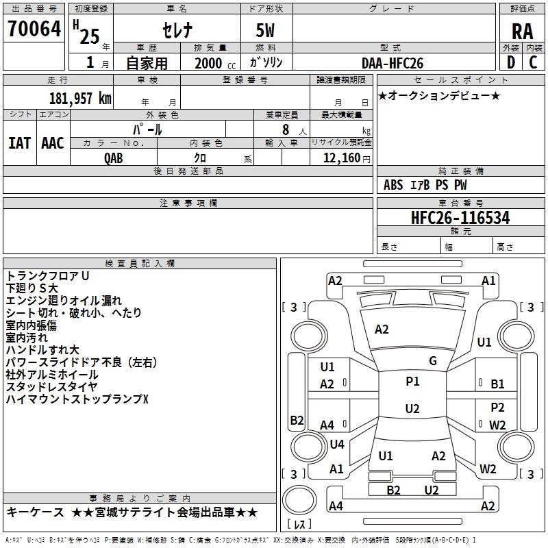 NISSAN SERENA 2013 г., лот № 70064