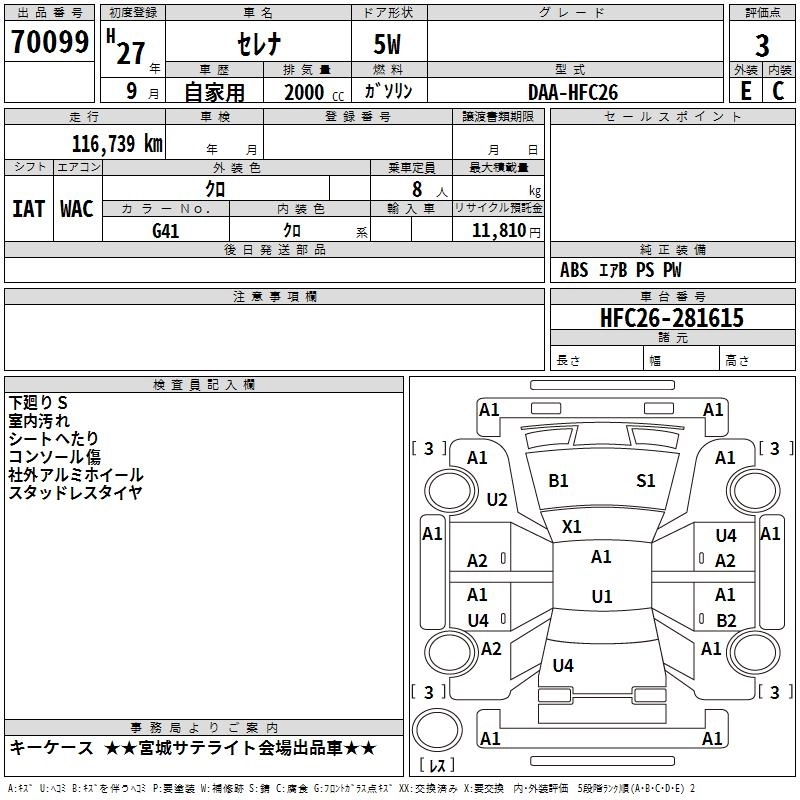 NISSAN SERENA 2015 г., лот № 70099
