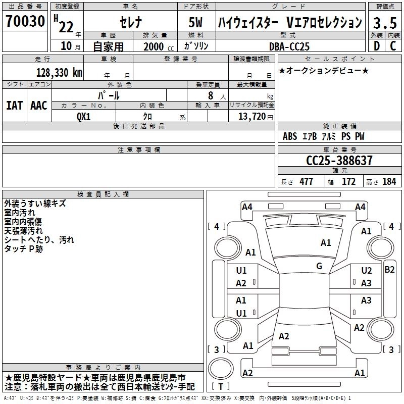 NISSAN SERENA 2010 г., лот № 70030