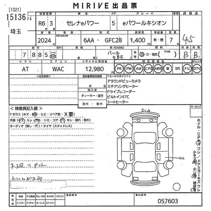 Статус выставлен на аукцион Лот 15136 Аукцион MIRIVE Saitama Дата аукциона 11.03.2026