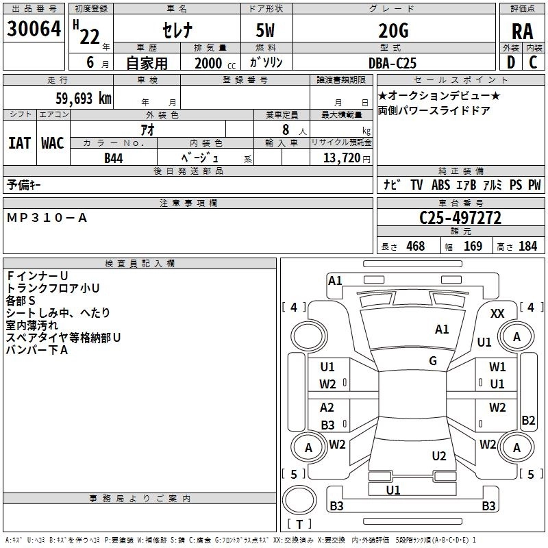NISSAN SERENA 2010 г., лот № 30064