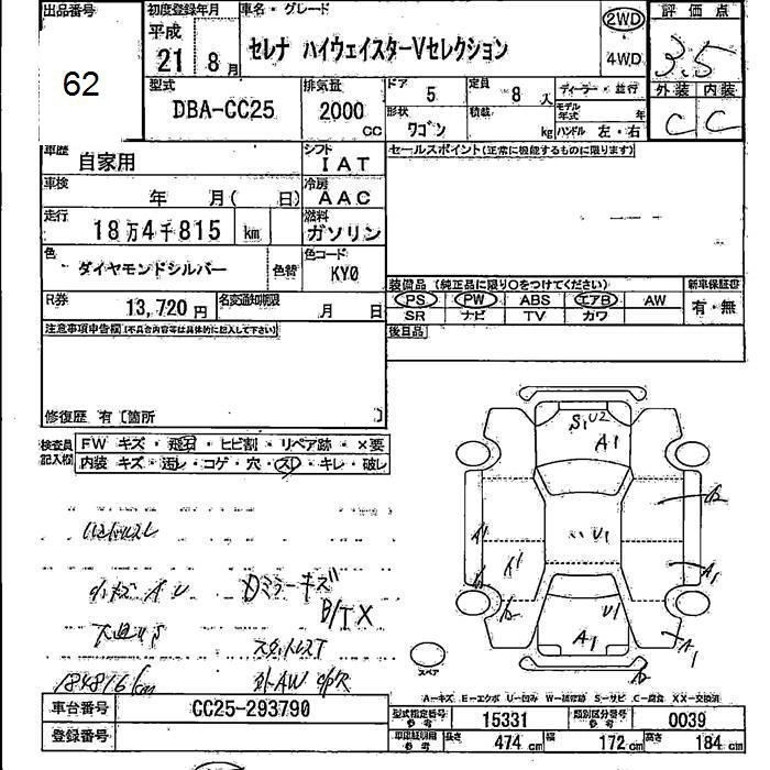 NISSAN SERENA 2009 г., лот № 62