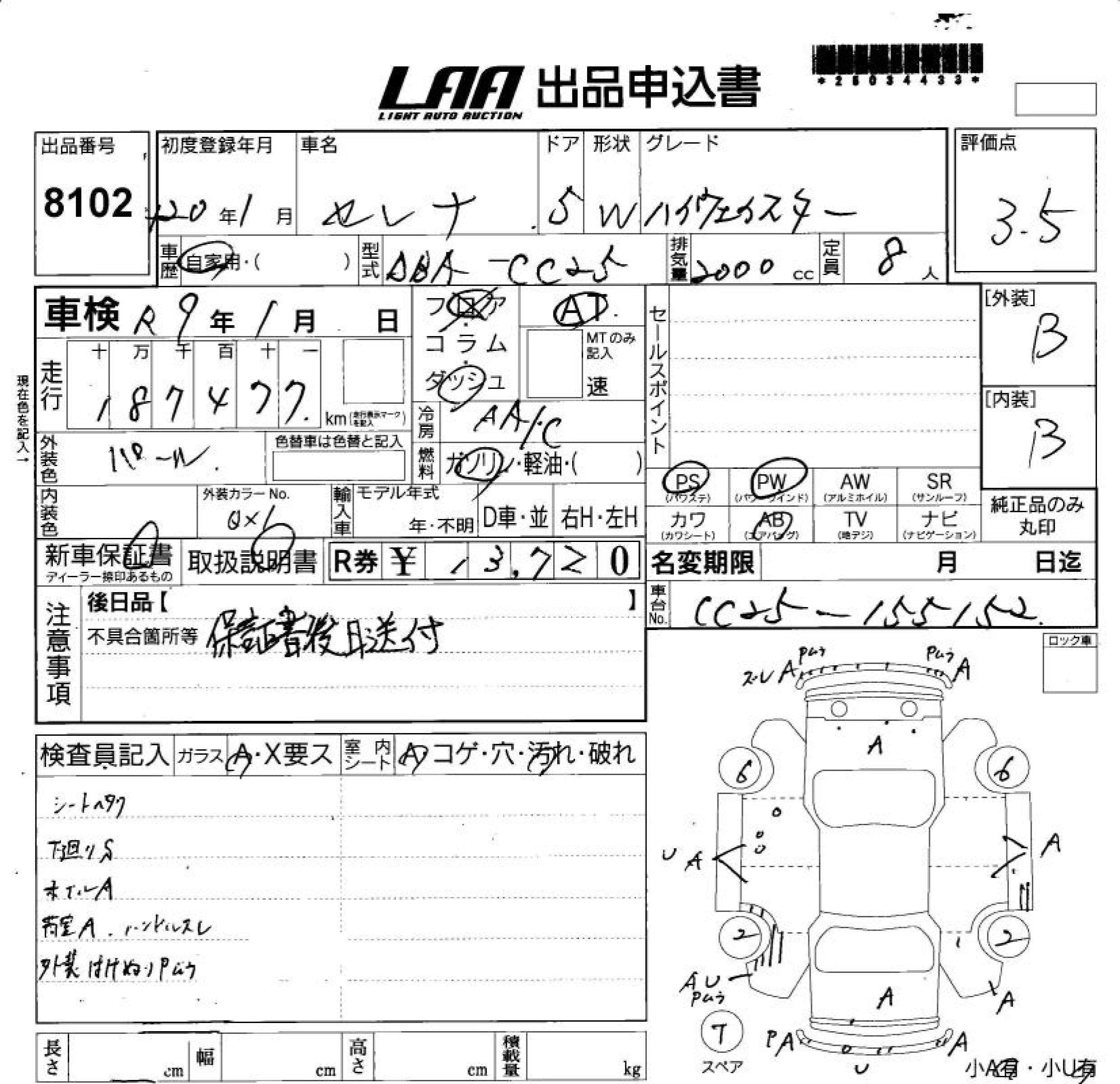 Статус выставлен на аукцион Лот 8102 Аукцион LAA Shikoku Дата аукциона 11.03.2026