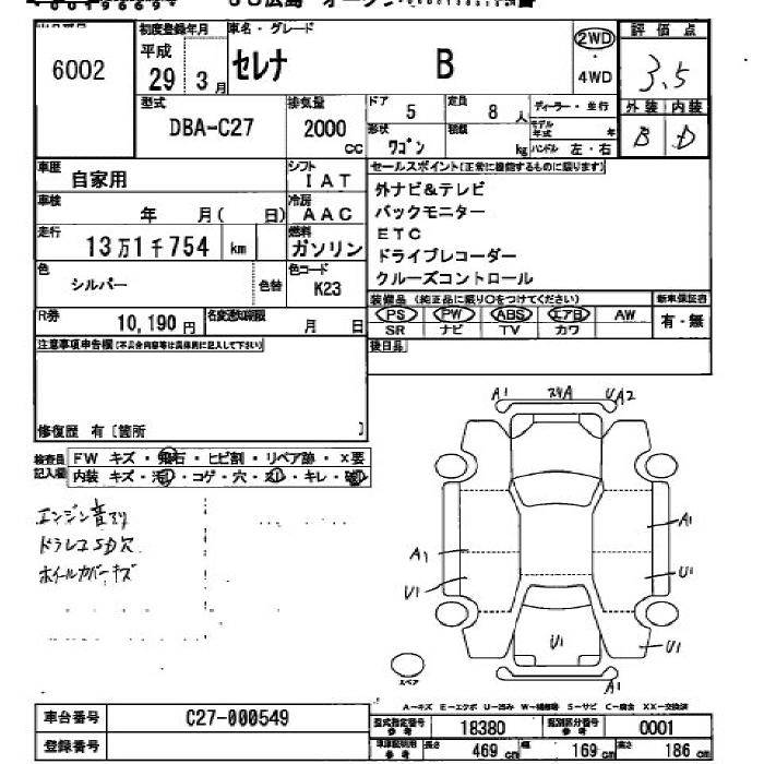 NISSAN SERENA 2017 г., лот № 6002