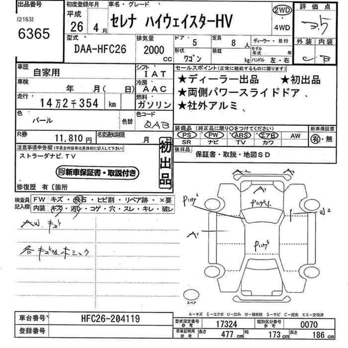NISSAN SERENA 2014 г., лот № 6365