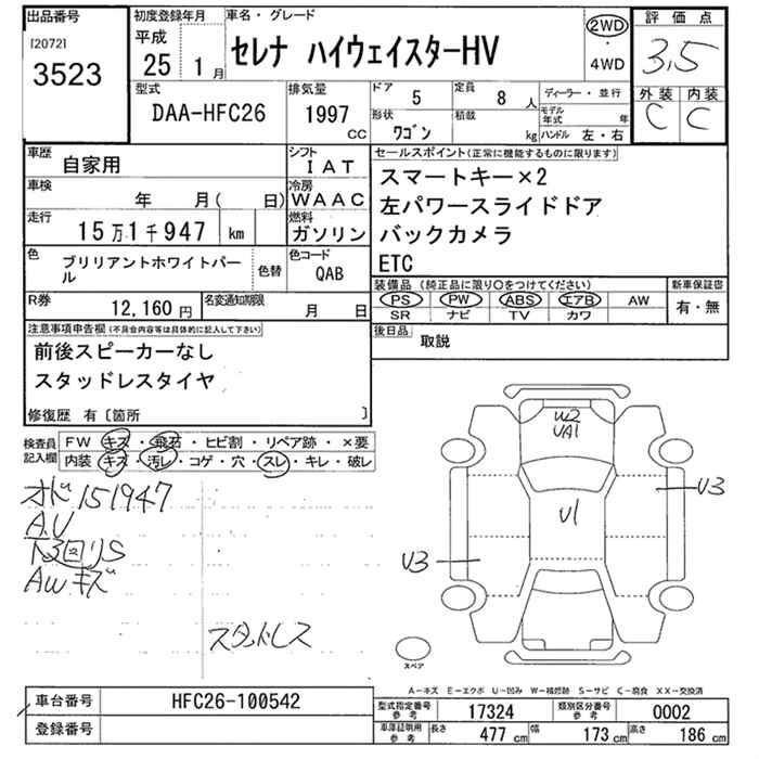 NISSAN SERENA 2013 г., лот № 3523