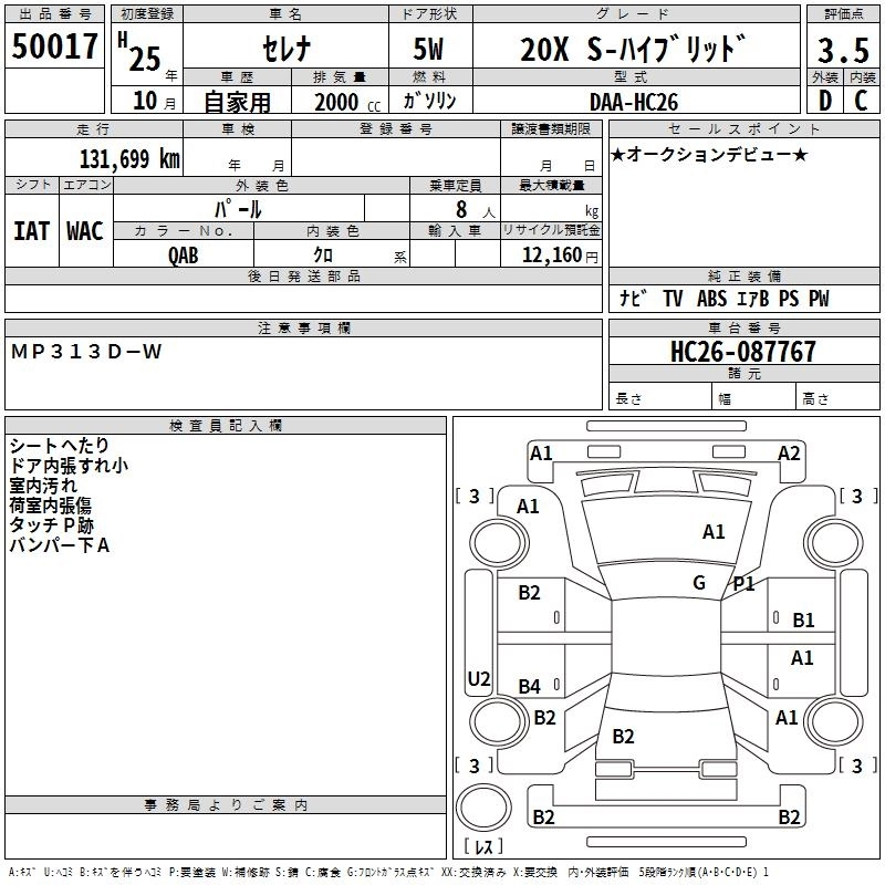 NISSAN SERENA 2013 г., лот № 50017