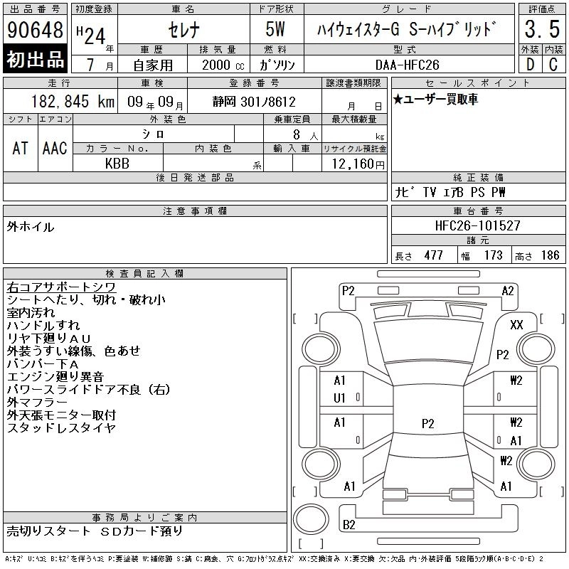 NISSAN SERENA 2012 г., лот № 90648