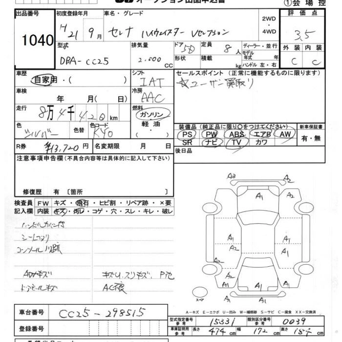 NISSAN SERENA 2009 г., лот № 1040