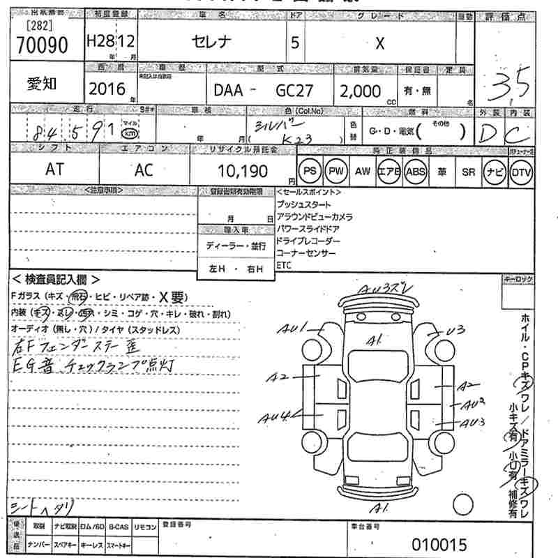 NISSAN SERENA 2016 г., лот № 70090