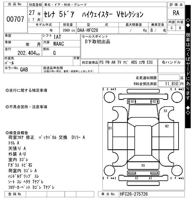 Статус выставлен на аукцион Лот 707 Аукцион ARAI Oyama Дата аукциона 12.03.2026