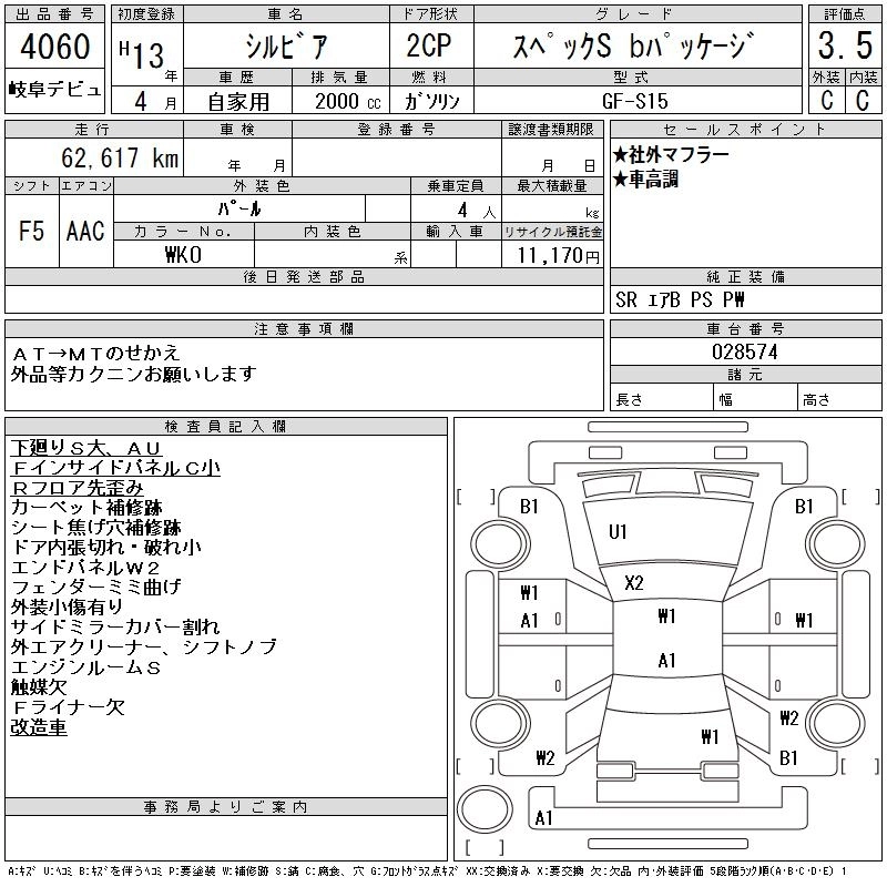 Год выпуска2001 Пробег 63 000 км КузовS15 Комплектация SPECIFICATIONS S B PACKAGE