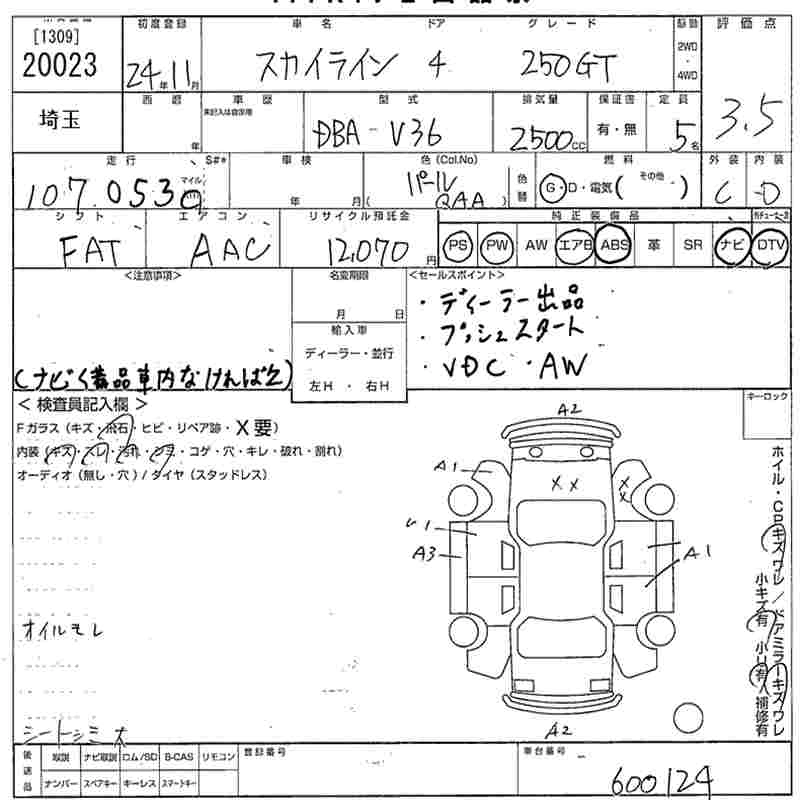 NISSAN SKYLINE 2012 г., лот № 20023