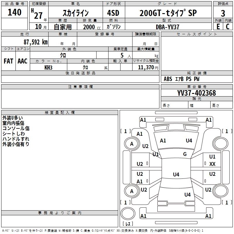 NISSAN SKYLINE 2015 г., лот № 140