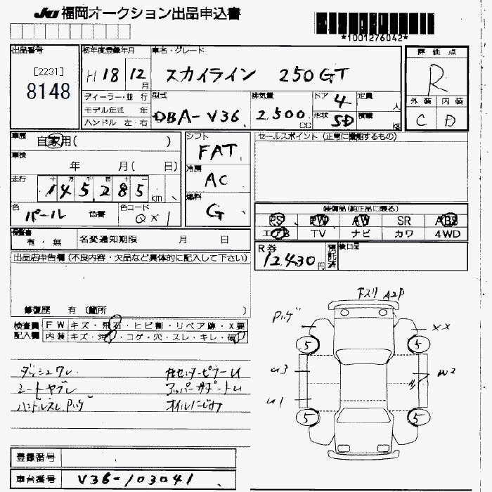 NISSAN SKYLINE 2006 г., лот № 8148