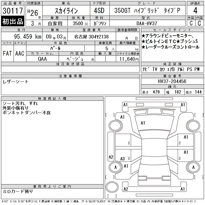 Год выпуска2014 Пробег 95 000 км КузовHV37 Комплектация350GT HYBRID TYPE P