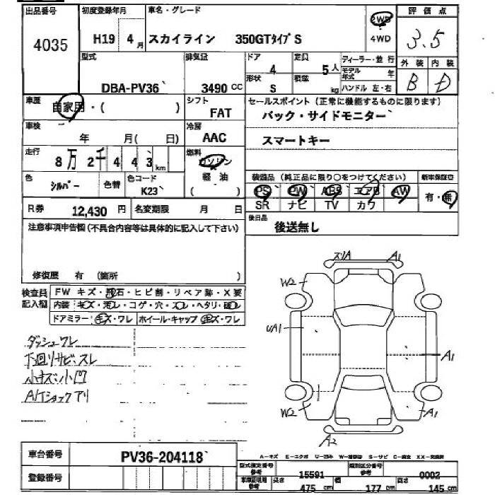 NISSAN SKYLINE 2007 г., лот № 4035