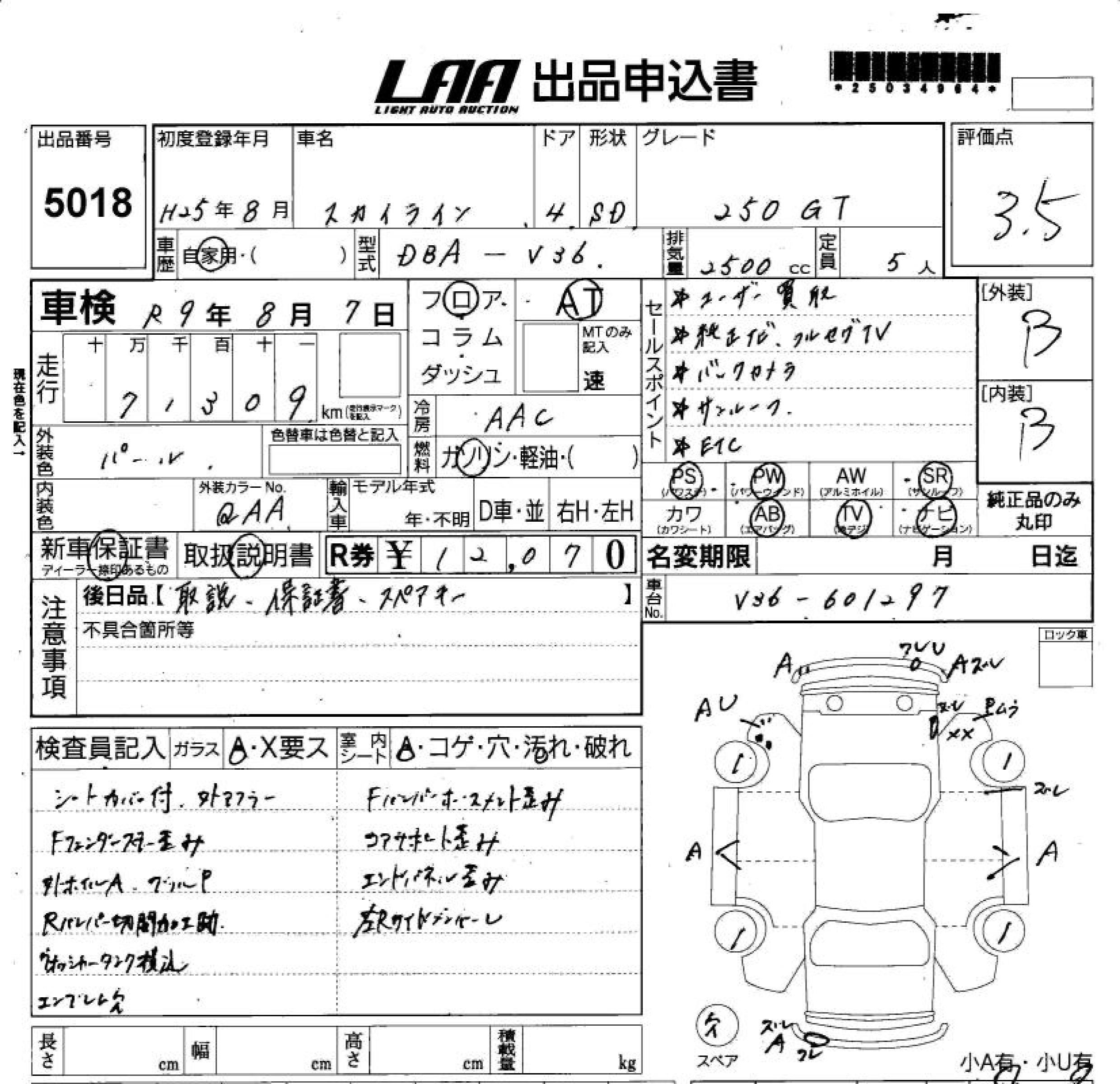 NISSAN SKYLINE 2013 г., лот № 5018