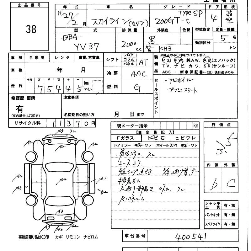NISSAN SKYLINE 2015 г., лот № 38